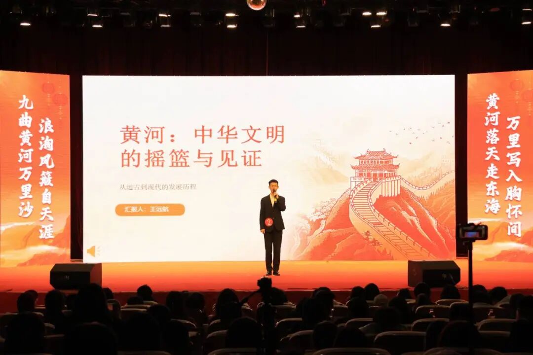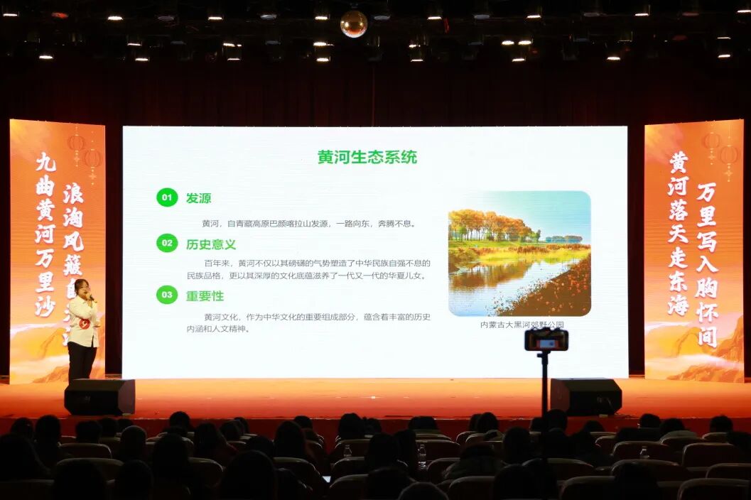 经各学校初赛,最终有12支团队进入决赛。本次大赛将理论讲解与文艺节目充分融合,参赛者围绕黄河在不同历史时期的文明故事、红色故事、伟大斗争的生动事迹以及先进人物一心向党的英雄行为、黄河环境保护、立法保护,阐述黄河面临的泥沙淤积、生态破坏等困境,介绍植树造林、资源合理利用等举措,讲述环保先锋和群众的努力及感人事迹,阐释黄河对国家经济支撑与发展动力等内容开展。